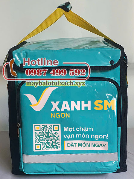 Mẫu sản phẩm túi giữ nhiệt giao hàng in logo thương hiệu Xanh SM: